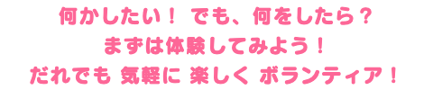 ボランティア活動を通して、さまざまな人々とふれあい、自分以外の人たちや社会に心を開き、もっと自分の視野を広げてみませんか。