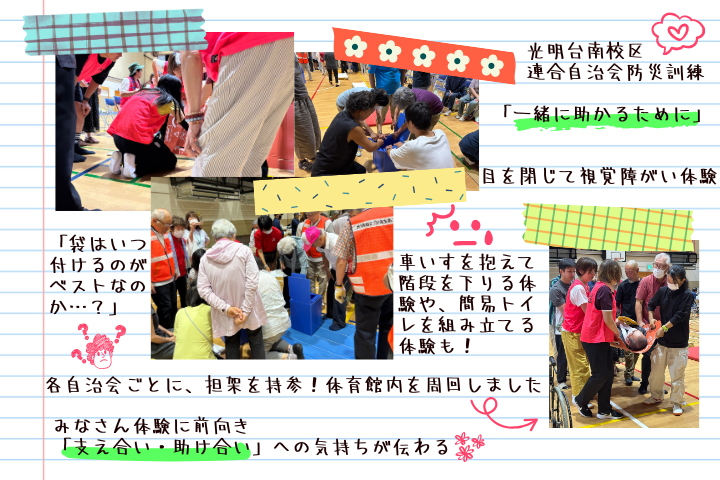 光明台南校区連合自治会では「一緒に助かるために」をテーマに防災訓練が行われました!