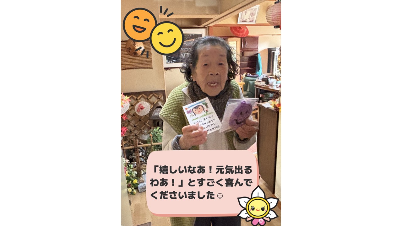 お手紙を受け取った方は、「こんなにたくさん書いてもらって嬉しいわあ!」、「これ見るだけで元気になるわぁ!家に飾っとこ!」と、とても喜んでくださいました☺