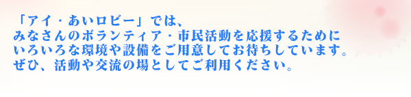 - 初めての方は、気軽にアイ・あいロビーまでお問い合わせください。