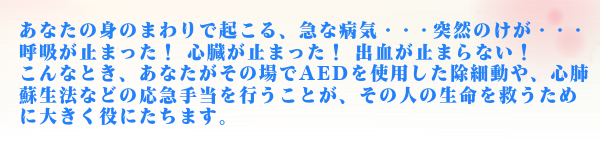 - 自動対外式除細動器(AED)の操作も含まれるています。