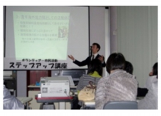 ボランティア・NPOを見つめ直して!講師:湯川 まゆみ 氏 平成26年1月29日 NPO法人 SEINの代表である湯川さんから、「自分がやりたいと思う活動は、あきらめないで挑戦する」と、社会に対する情熱と元気をもらった2時間でした。 |