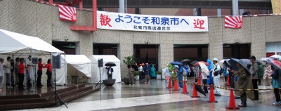 「こんにちは」「どちらからですか」「がんばって」「気をつけて」「また来年も来てください」と元気に声を掛け、「和泉市は毎年接待がとても行き届いていますね」と他府県からの参加者にも大好評です。