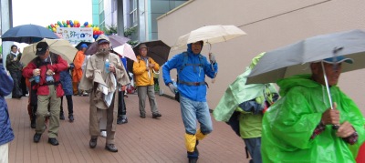 朝早くからリュックサックを背負って多くの人が私たちのところに、遠くは北海道や仙台、鳥取と全国から参加されていました。